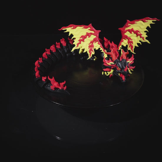 Scorchwing Tyrant is a 3d printed dragon made with PLA. It is an articulating dragon with wings. Products may differ in color due to possible inconsistencies in filaments. Beware of potential sharp edges. We are licensed to sell this product.